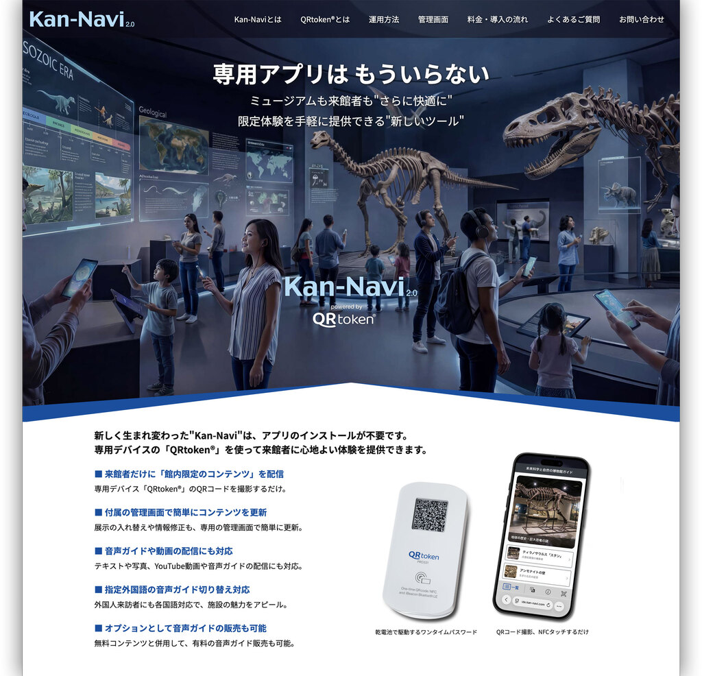 博物館・美術館・水族館・記念館や神社仏閣、企業のショールームなど幅広くご利用いただける、当社開発の既存サービス "Kan-Navi"も導入展開が簡単・スピーディにできます。