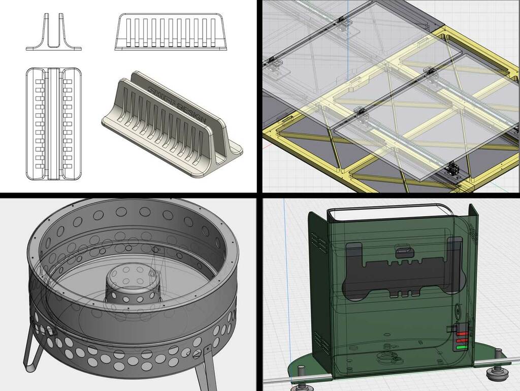 左上:iPad・PC用スタンド/右上:屋根材の縮小構造模型