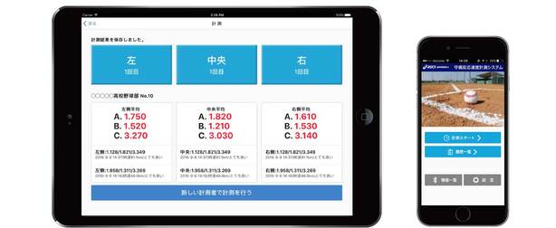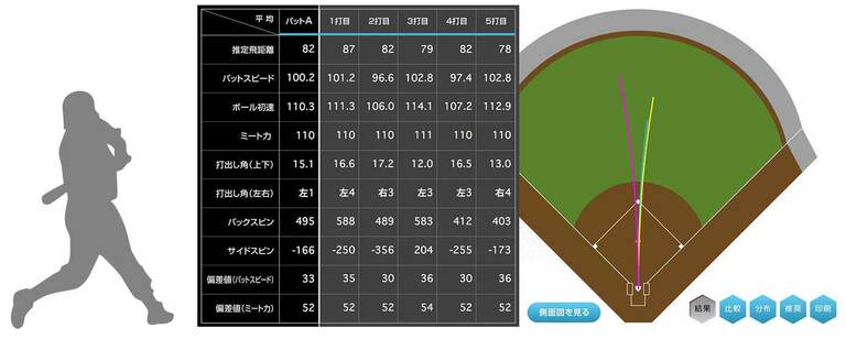 バットのスイングスピード、ボール初速・打ち出し角・スピン量などを計測して能力に合ったバットを推奨するシステム機器。